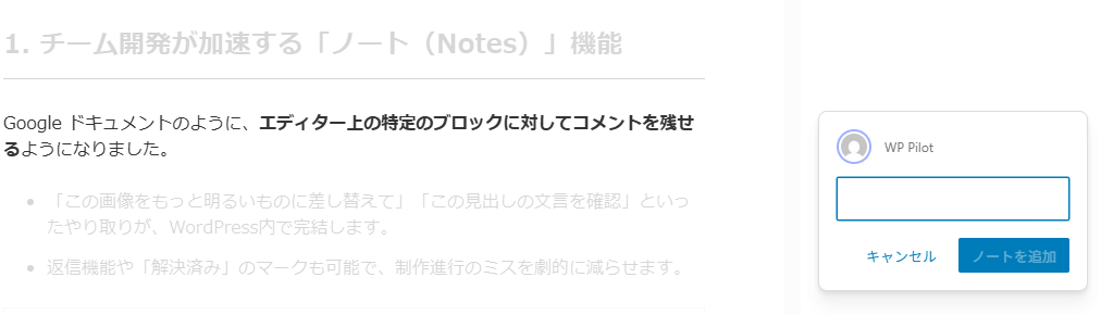 Google ドキュメントのように、エディター上の特定のブロックに対してコメントを残せるようになりました。